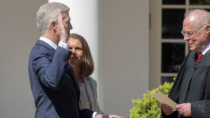 WASHINGTON — Longtime Doyle Inn of Court member Neil M. Gorsuch was sworn in on Monday as the 113th justice of the Supreme Court. Justice Gorsuch, 49, took his judicial oath in the White House Rose Garden. “I promise you that I will do all my powers permit to be a faithful servant of the Constitution and laws of this great nation,” he said.